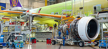 In the 3D assemblies of the design stage, Airbus treats the engine as a "shell" to which a number of access points for mechanical, electrical and software is to be added. The responsibility for motor the area is held by the engine supplier and the aircraft operator.